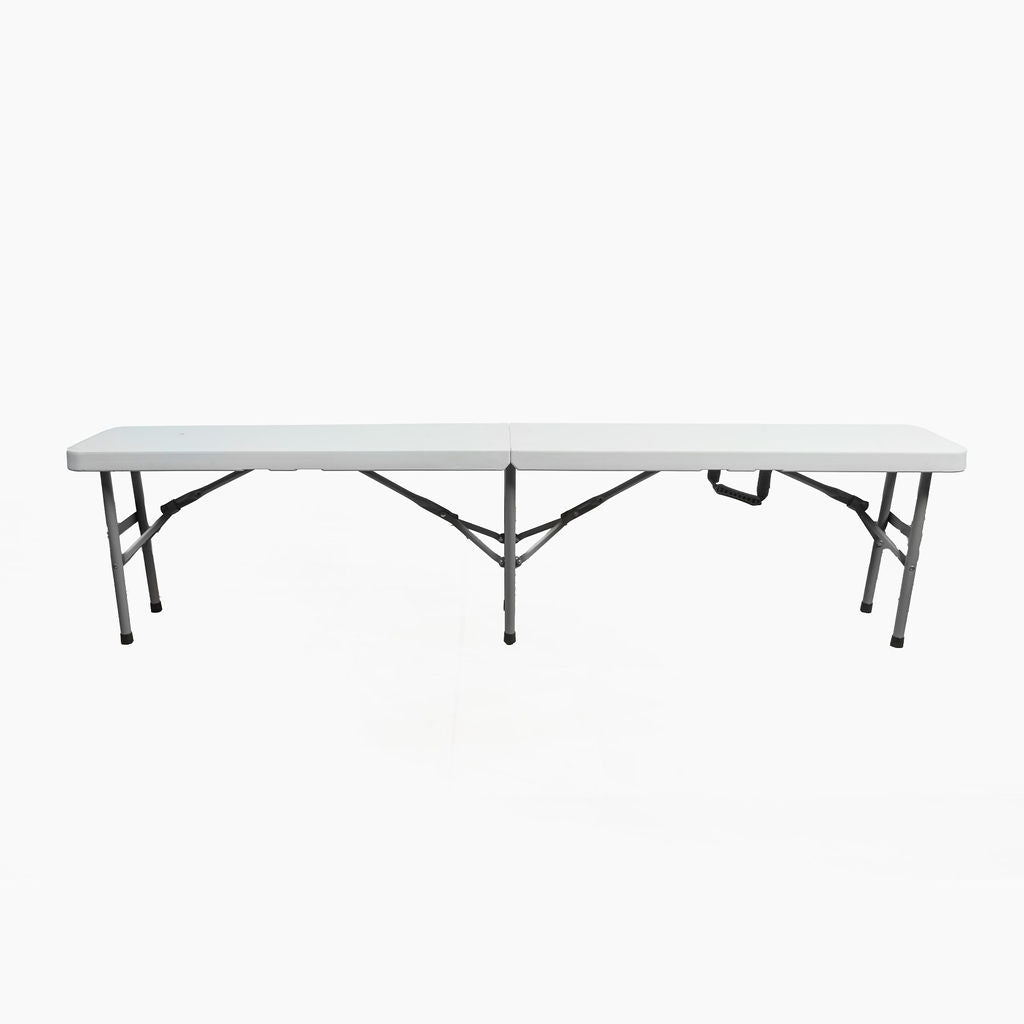 1. Polyvalence d'utilisation : Le banc blanc pliable de 183 cm convient à une variété d'occasions, des fêtes de jardin aux événements sportifs, offrant un espace assis pratique et confortable pour un grand nombre de personnes.