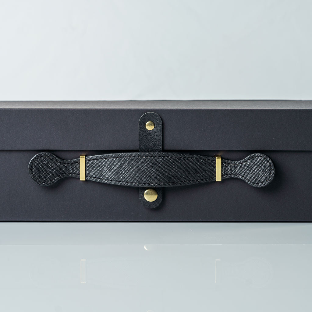 Fermeture Magnétique pour une Présentation Raffinée La fermeture magnétique ajoute une note de raffinement à votre emballage noir, créant une expérience visuelle chic. Vos bouteilles seront présentées avec style et praticité à La Réunion.