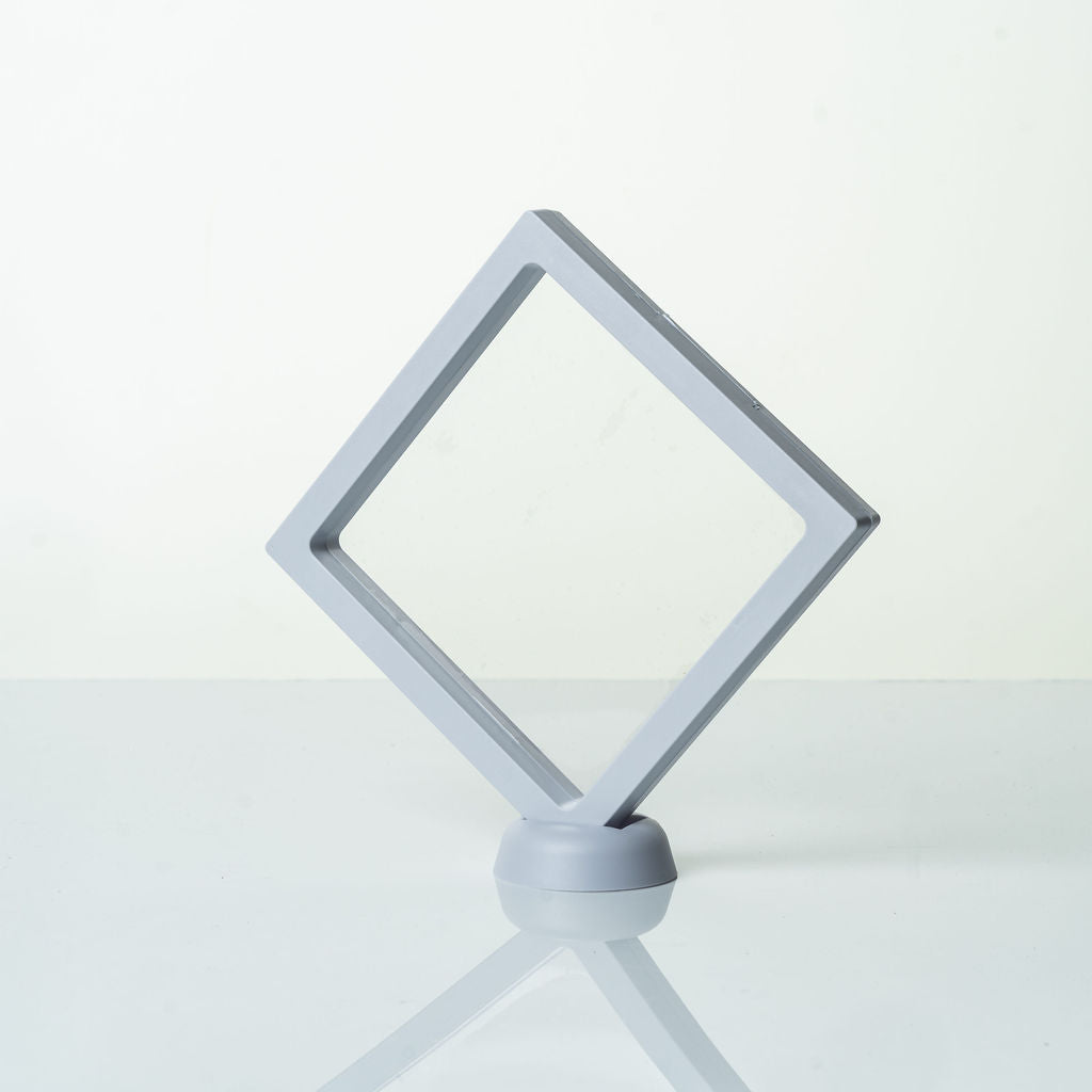 Découvrez l'écrin de présentation transparent avec cadre blanc de dimensions 14x14cm, une solution raffinée pour exposer vos articles avec élégance et sobriété.
