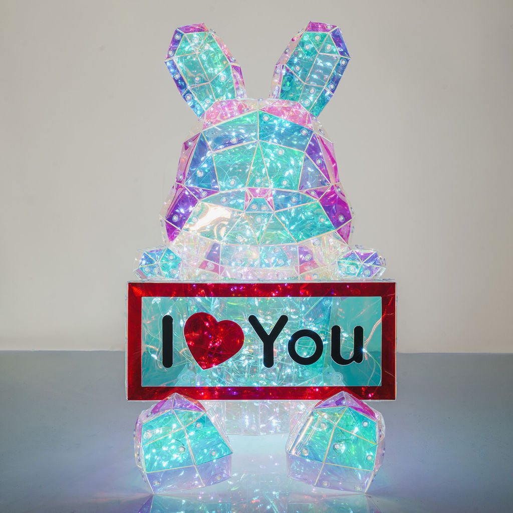 1. Charme romantique : Avec sa pancarte LOVE, ce lapin incarne l'amour et la tendresse, ajoutant une touche romantique à votre décoration intérieure.