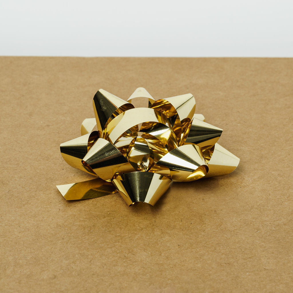 Explorez nos nœuds adhésifs dorés de 6,35 cm de diamètre, des ornements pratiques et étincelants pour ajouter une touche d'élégance à vos emballages et décorations.