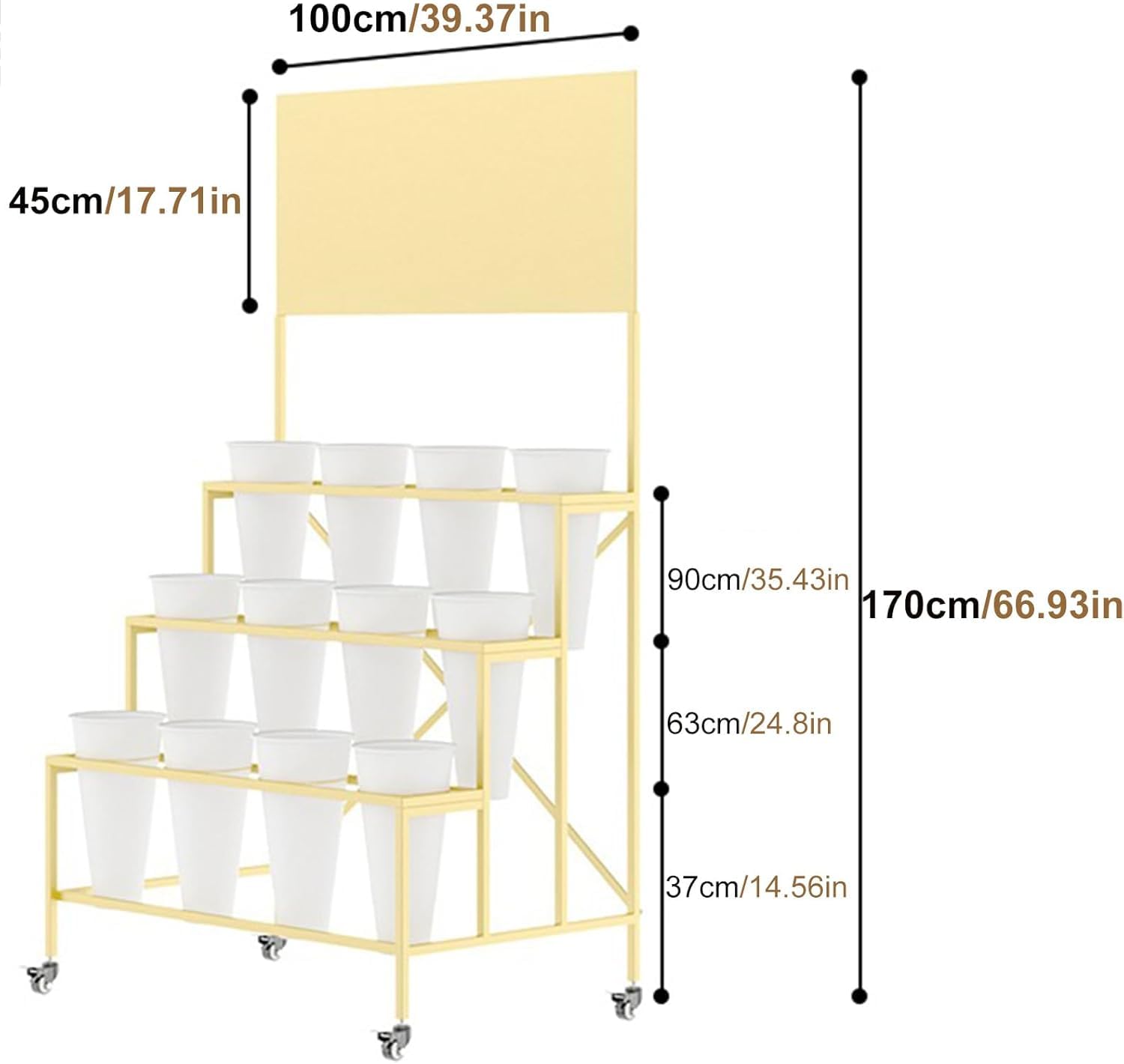 Presentoir fleur structure Or + 12 supports bouquet blanc (100x170cm)