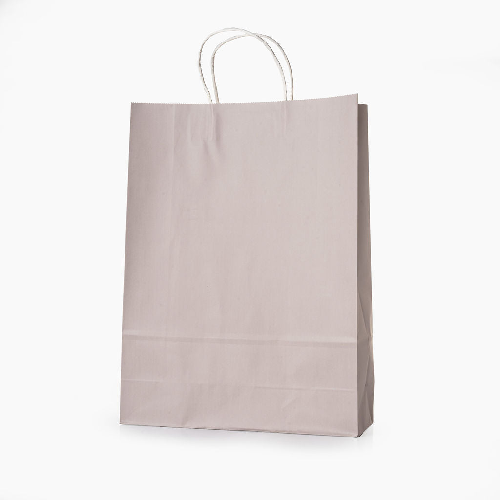 Découvrez les sacs kraft à poignées torsadées Gris L.31x l.11,5x H.42cm, une solution d'emballage pratique et esthétique pour une variété d'articles.