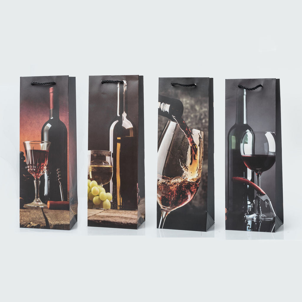 Découvrez nos sacs luxe pour bouteille à motif, avec 4 designs différents par paquet. Idéaux pour présenter vos bouteilles de vin ou de champagne avec élégance et originalité à La Réunion (974).
