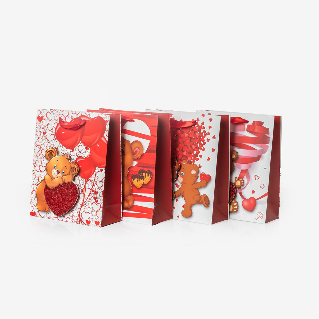 Les Sacs Luxe Poignées Cordelettes à Motifs offrent une touche d'élégance à La Réunion. Chaque paquet comprend 4 designs uniques, mesurant L. 19,5cm x l.8cm x H. 23,5cm, pour sublimer vos cadeaux avec raffinement.